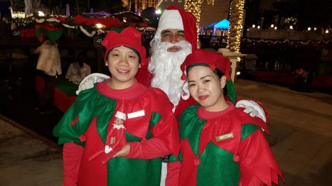 Then I saw children playing below the tree they were shrieking and laughing and throwing some white stuff at one another. The older one’s were making what looked like statues. Gilles explained to me that, that was stuff that they pretended was snow and in Dubai it was far too hot to ever snow, so people made pretend snow (Gilles is so clever, he knows about a lot of interesting things and he is always happy to explain, when I don’t understand). He also told me that the children were making snowmen.