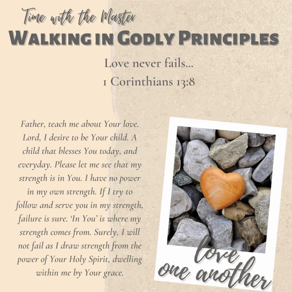 Walking in Godly Principles is a bi-weekly scripture of encouragement, subscribed by “…time with the master…”. Previously published on the front page of the site, it will now appear additionally, as a post as well.