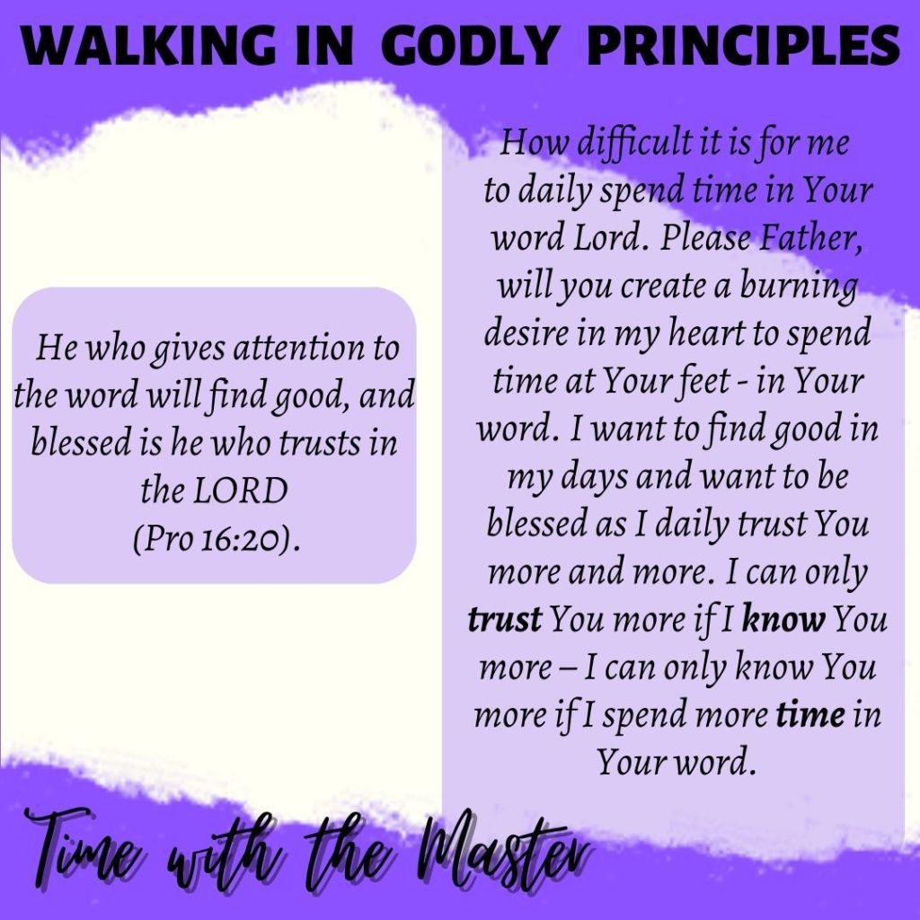 Walking in Godly Principles is a bi-weekly scripture of encouragement, subscribed by “…time with the master…”. Previously published on the site’s front page, it will also appear as a post.