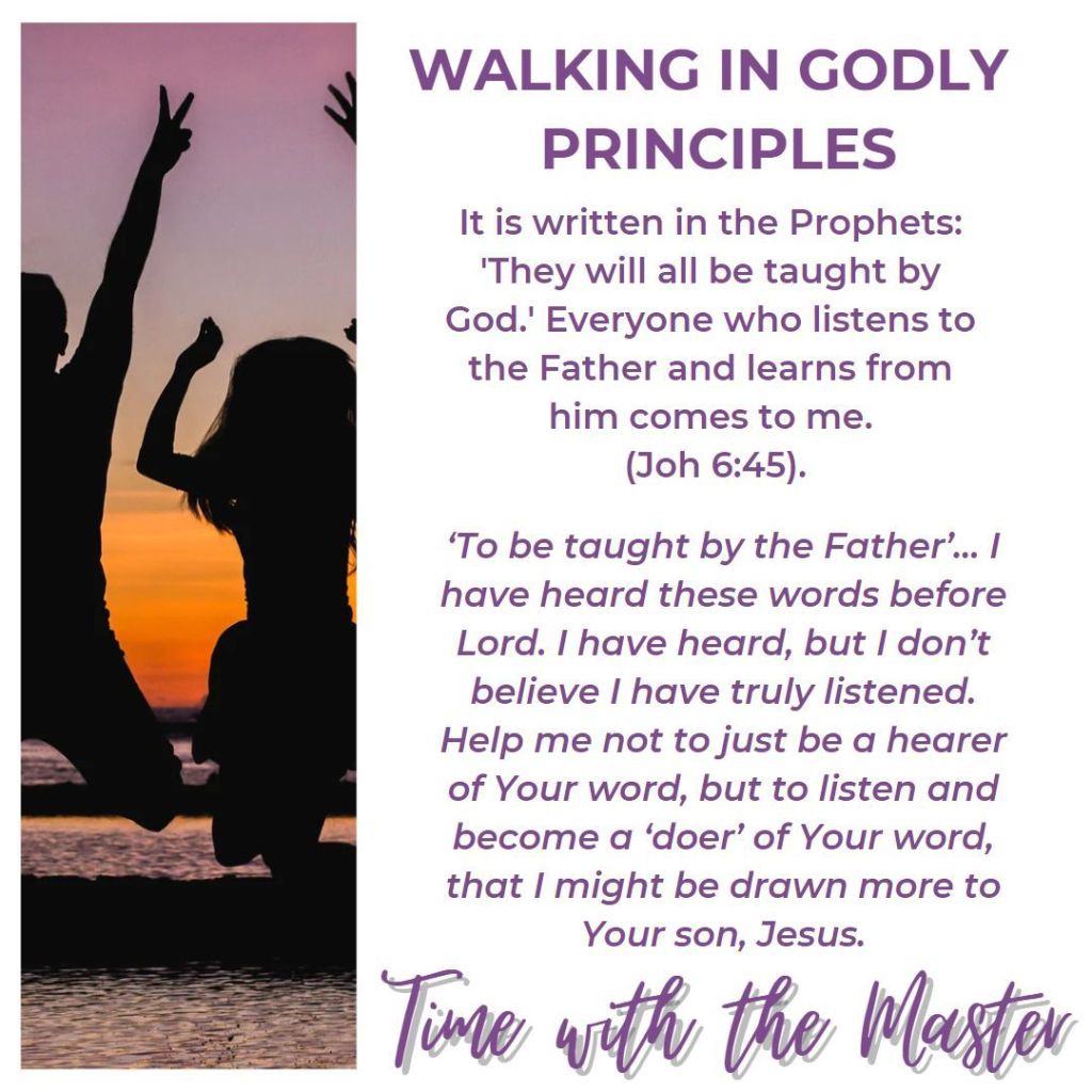 Walking in Godly Principles is a bi-weekly scripture of encouragement, subscribed by “…time with the master…”. Previously published on the site’s front page, it will also appear as a post.
